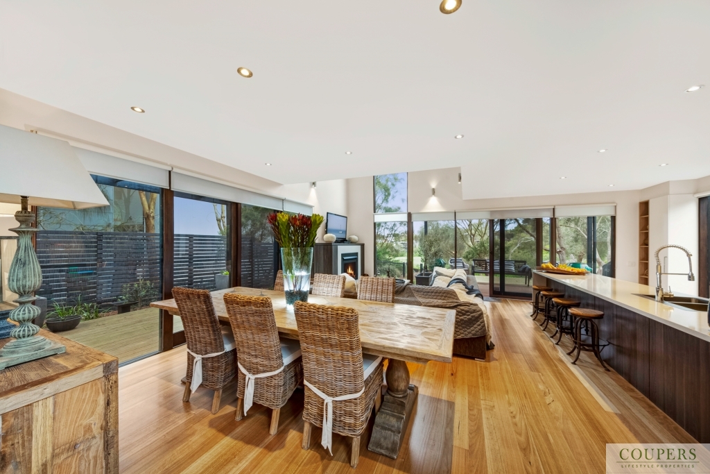 This stunning home in a magnificent, tranquil setting adjacent to a green space of ancient moonah trees, the first hole of the Open Course and and overlooking the 16th green of The Legends Course is superbly designed by award-winning architects Jackson Clements Burrows.  It is set in the heart of the world-class Moonah Links Resort, within walking distance of all the world-class facilities including 2 championship golf courses, restaurant, bar, golf pro shop and day spa.