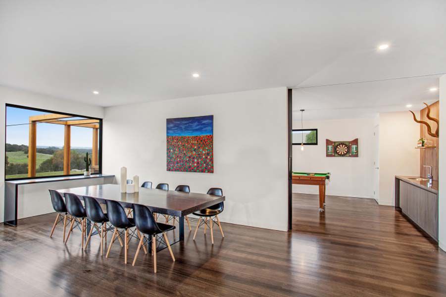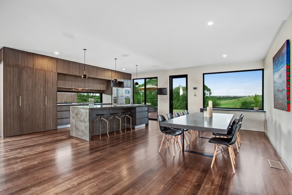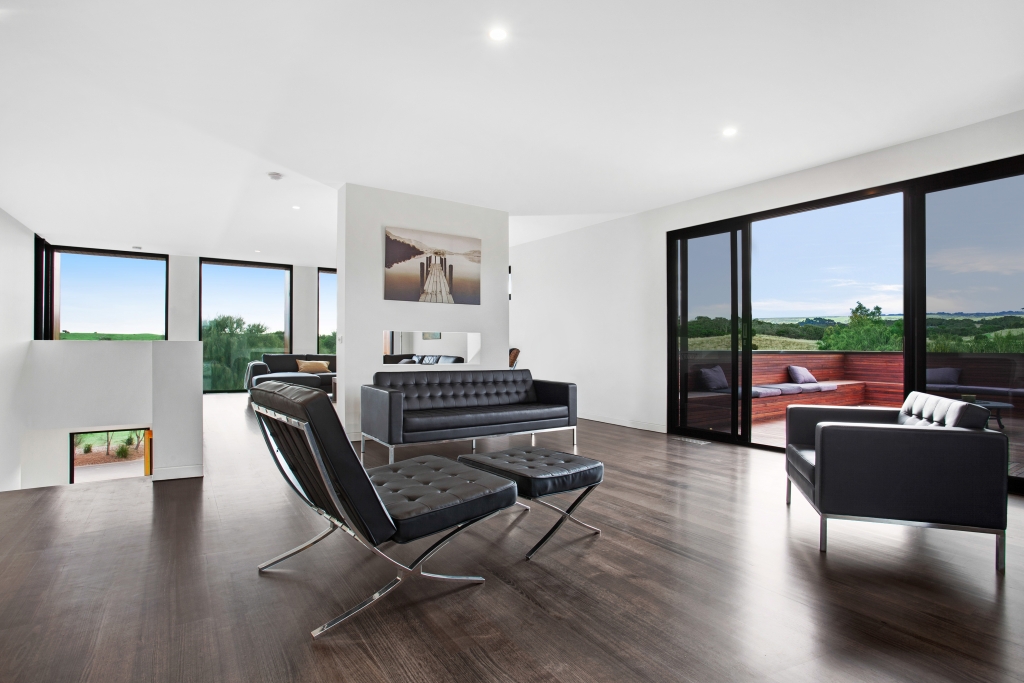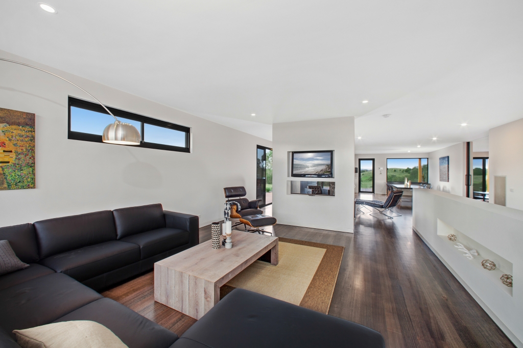 A magnificent, modern, near- new home designed to maximize views of the nearby, adjacent and distant open farmland and views across the championship Open Course, the house boasts a north-facing open-plan living area opening to large northern deck with in-built seating and a full-width eastern deck spilling out to a large, landscaped, level garden overlooking the 8th hole of the Open Course.