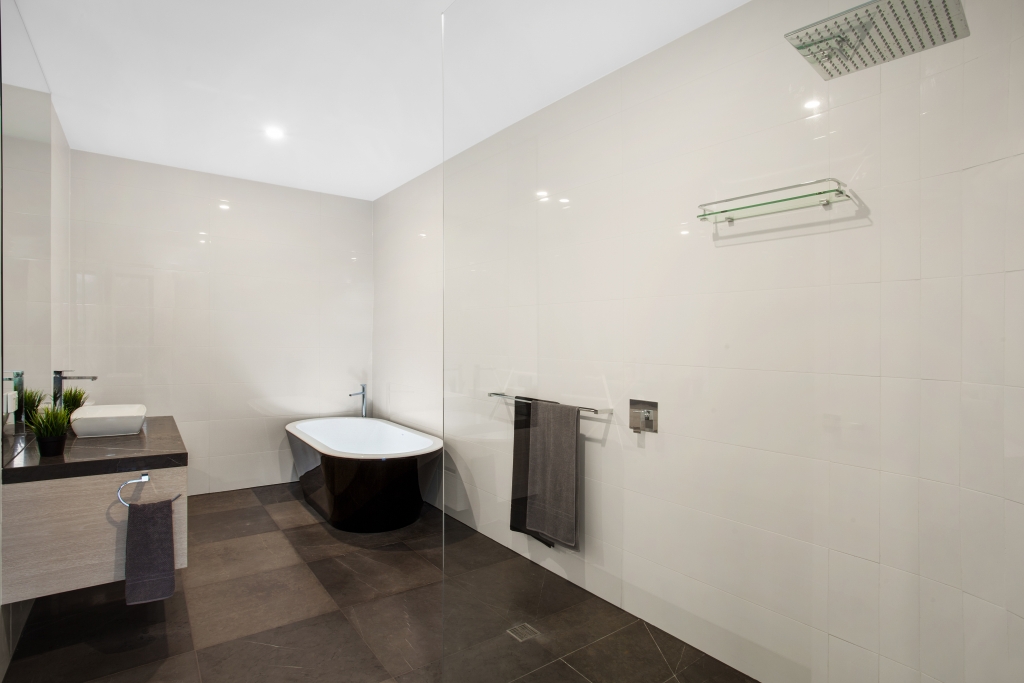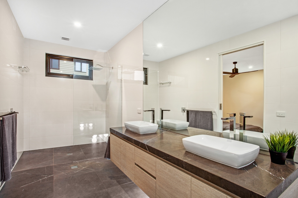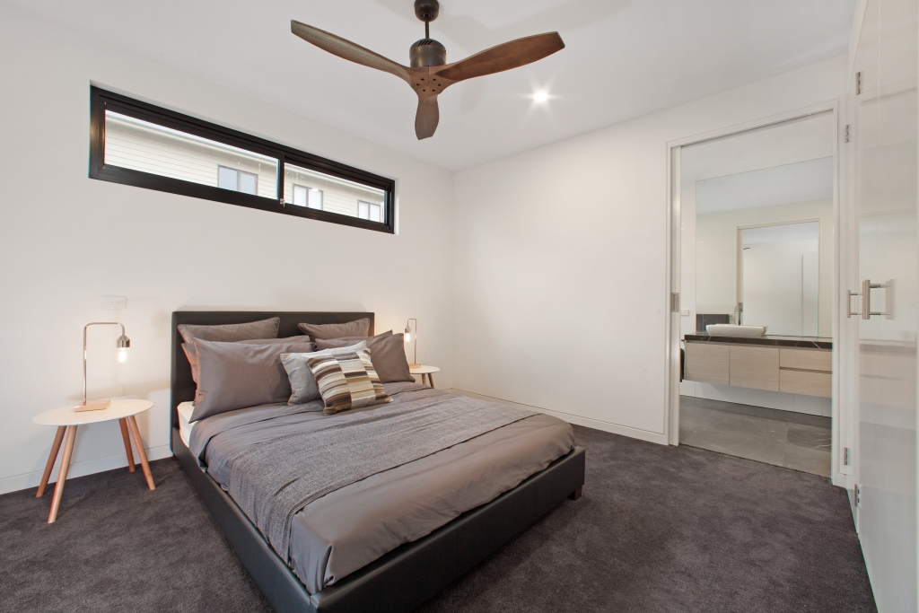 At entry level are the private spaces: 3 spacious, double bedrooms (one with a luxury en-suite), a spacious family bathroom with bath tub and separate laundry. The large garage has internal access to the house and utility area. This level has views of the garden and adjacent open green-space and rural views.