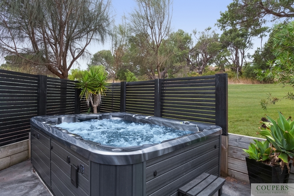 Special features: Outdoor living is central to the design and enhances the aesthetics and comfort of the home.  The covered outdoor living room/alfresco, protected with outdoor blinds from the weather, has and magnificent views of the surrounding environment.  The easy-to-maintain, landscaped garden intertwines with the building to form outdoor circulation zones and recreation spaces including a private north-facing area with a 10-seater spa.