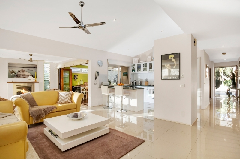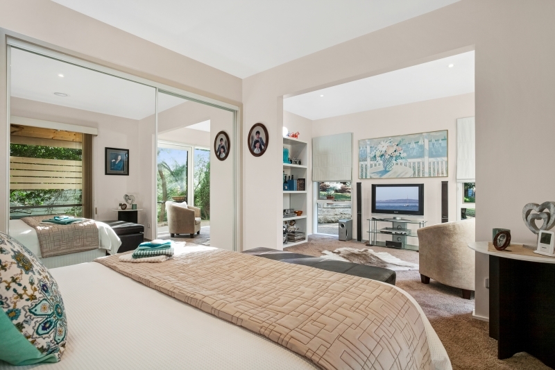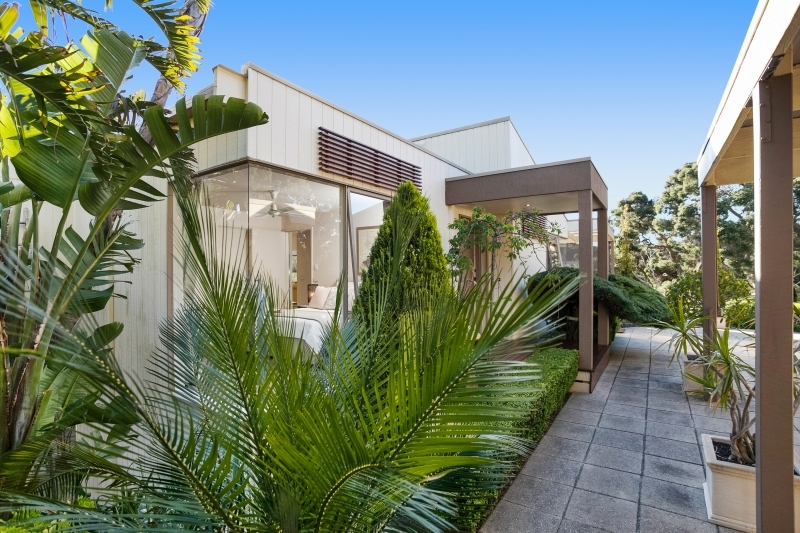 This home offers versatile, low maintenance living that will suit your lifestyle. The minimalist design expresses a feeling of relaxed informality with a number of tranquil indoor living areas to which one can escape, outdoor living areas for entertaining or relaxing in the open air, bedrooms with leafy views and a shipshape kitchen. For those wanting a one level residence, here all daily living is at the entry level with guest areas on a lower level. The entry leads to the Master bedroom and light-filled open plan daily living area with its direct access to the covered alfresco and garden. The light and breezy rooms with their ceramic floors that enhance the beachy, outdoor-in look, the sea-green coloured touches in the kitchen and bathrooms and the local limestone in the landscaping, echo the natural beauty of the Back Beach and the Bay beaches.