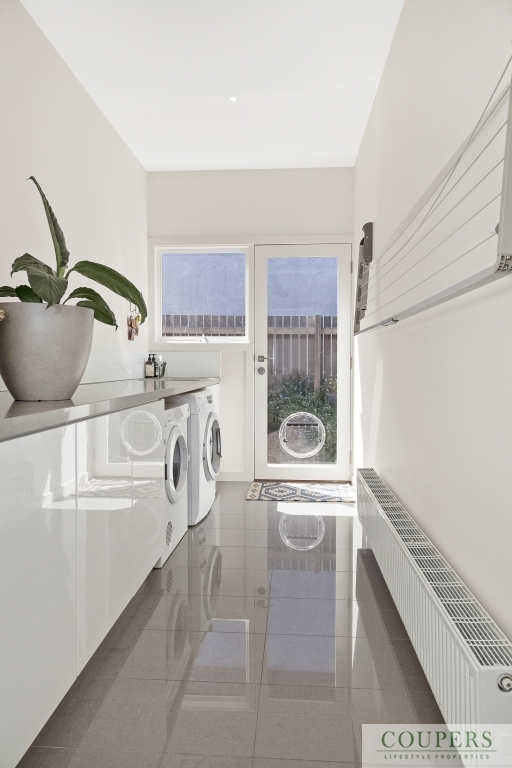 • Large double garage with interior access and loads of built-in storage, a wine cellar and space for jet ski or golf cart
