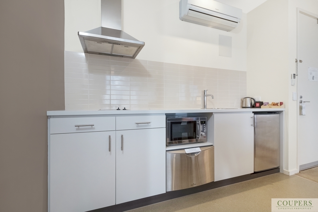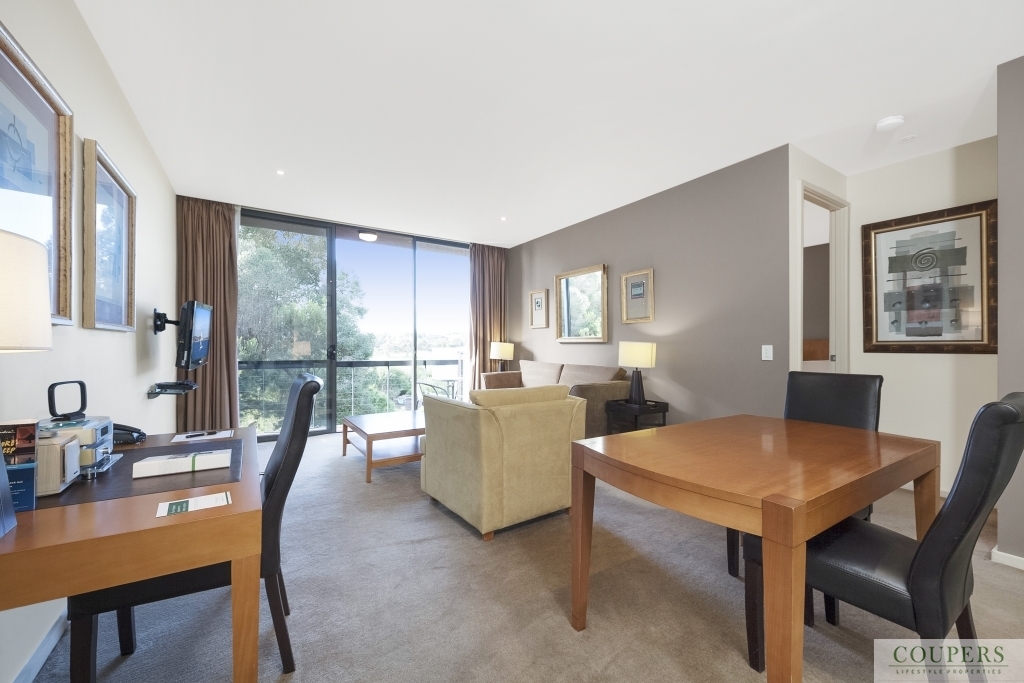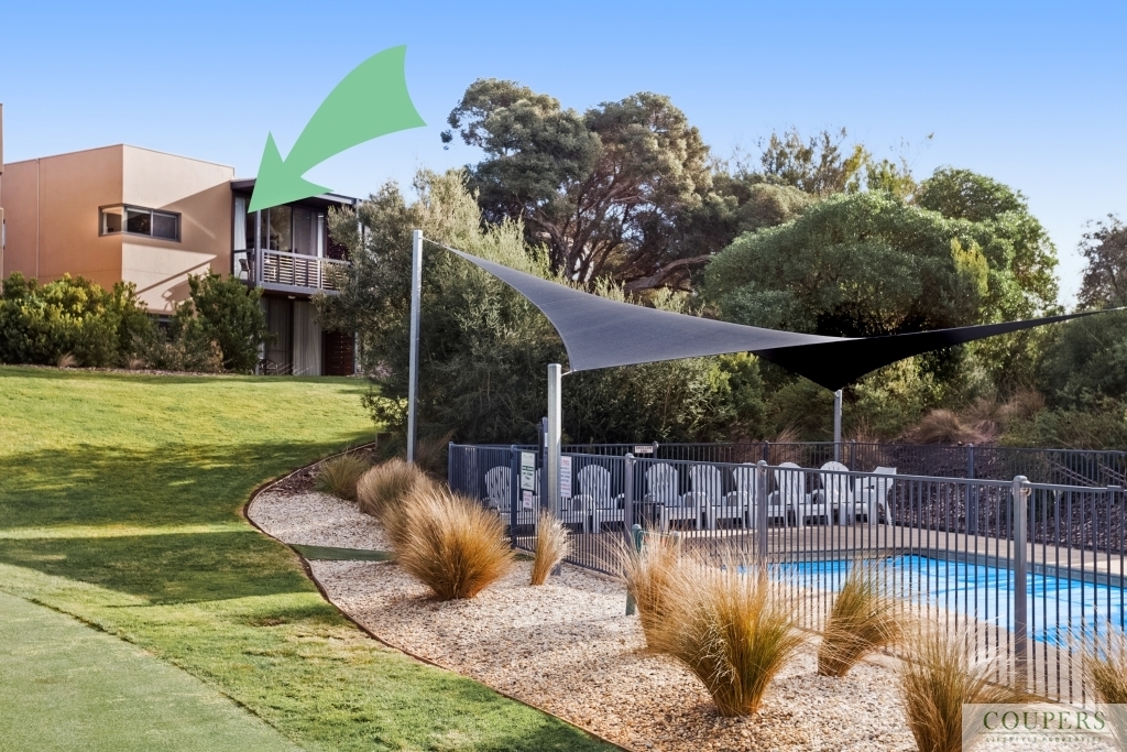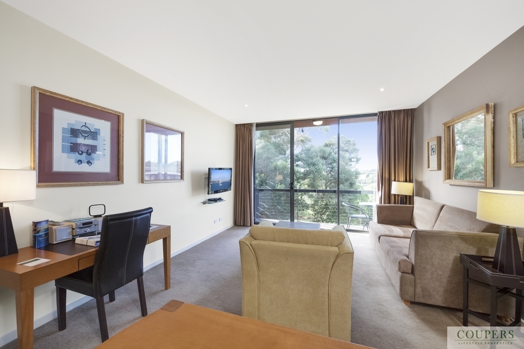 A one bedroom apartment in this privately situated block within the Moonah Links Resort apartments, rarely comes on the market.  This particular apartment is north-facing overlooking the practice putting green, the hotel guests' solar-heated pool and a garden area which provides privacy for in-house guests in the apartment.  Enter this end apartment at car-park level - no stairs.  Fully furnished and currently in the Peppers pool of apartments one can make use of the apartment occasionally while still receiving an income.   The apartment comprises: Open plan kitchen/ dining/ and lounge area opening to the balcony; Master bedroom with ensuite; European laundry in bathroom.  From this tranquil location, stroll to the adjacent Pavilion Clubhouse with restaurant, bar, pro shop and day spa.  The Hot Springs, beaches, wineries and cosmopolitan seaside towns such as Rye, Sorrento and Portsea are minutes away.