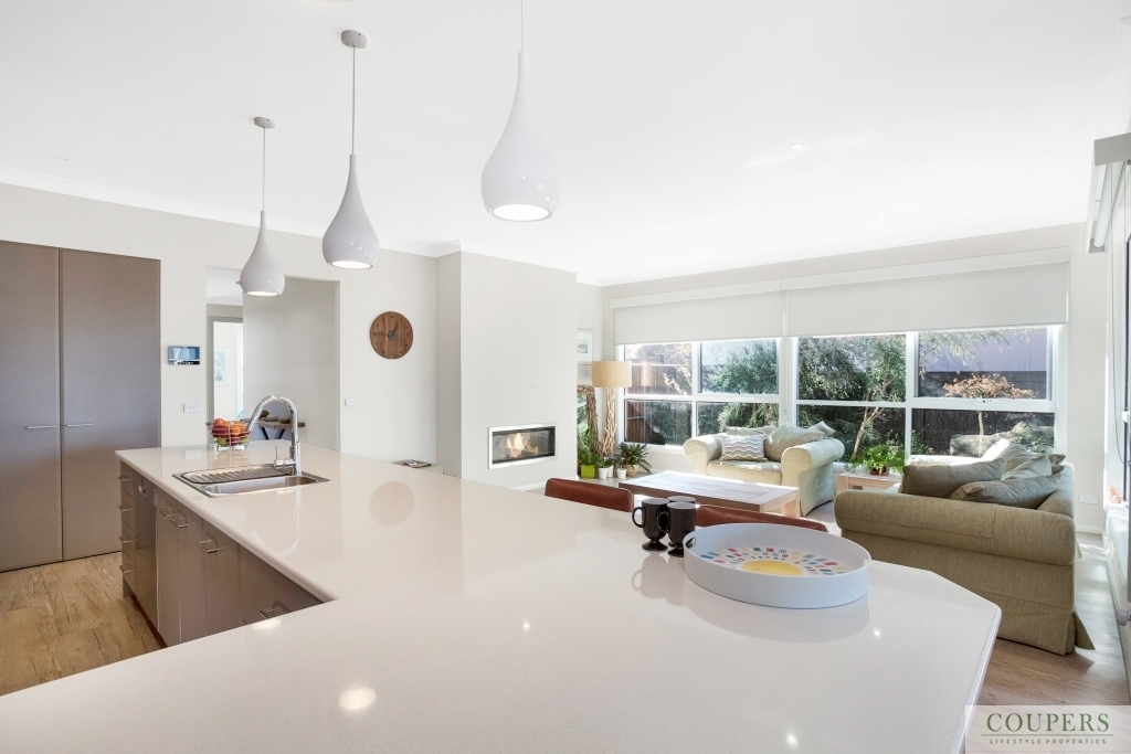 Special features include: Neutral colours throughout with coastal feel; Kitchen with loads of storage, spacious bench top with room for seating; refrigerator, quality appliances including Pyrolytic oven, Hydronic heating throughout; gas log fire; double-glazed quality awning windows and blinds throughout; spacious built-in robes in each bedroom; fully tiled bathrooms; large shower recesses in each bathroom; second bathroom with tub and shower; carpeted bedrooms, easy-care, quality limed timber-effect floor covering in living areas; gas solar booster to hot water service; low maintenance, landscaped garden.