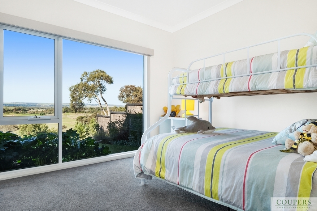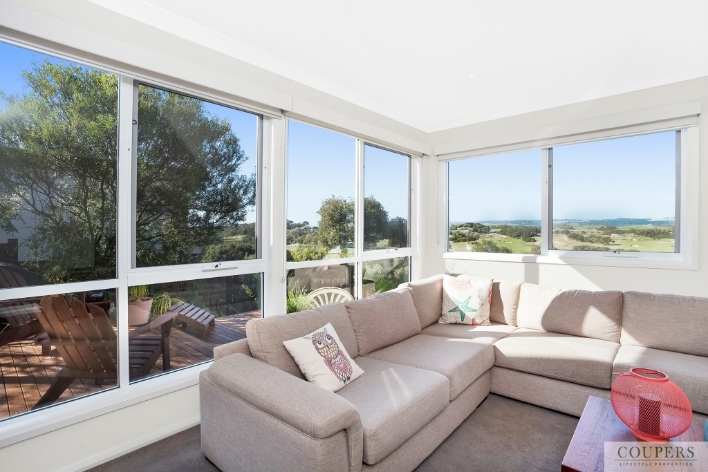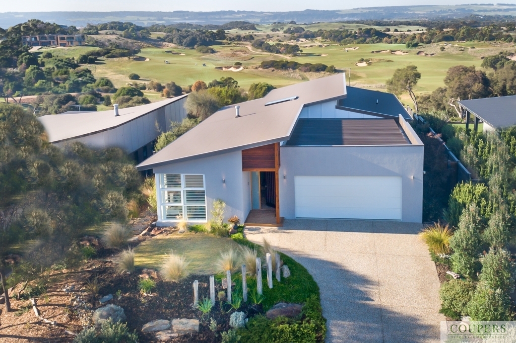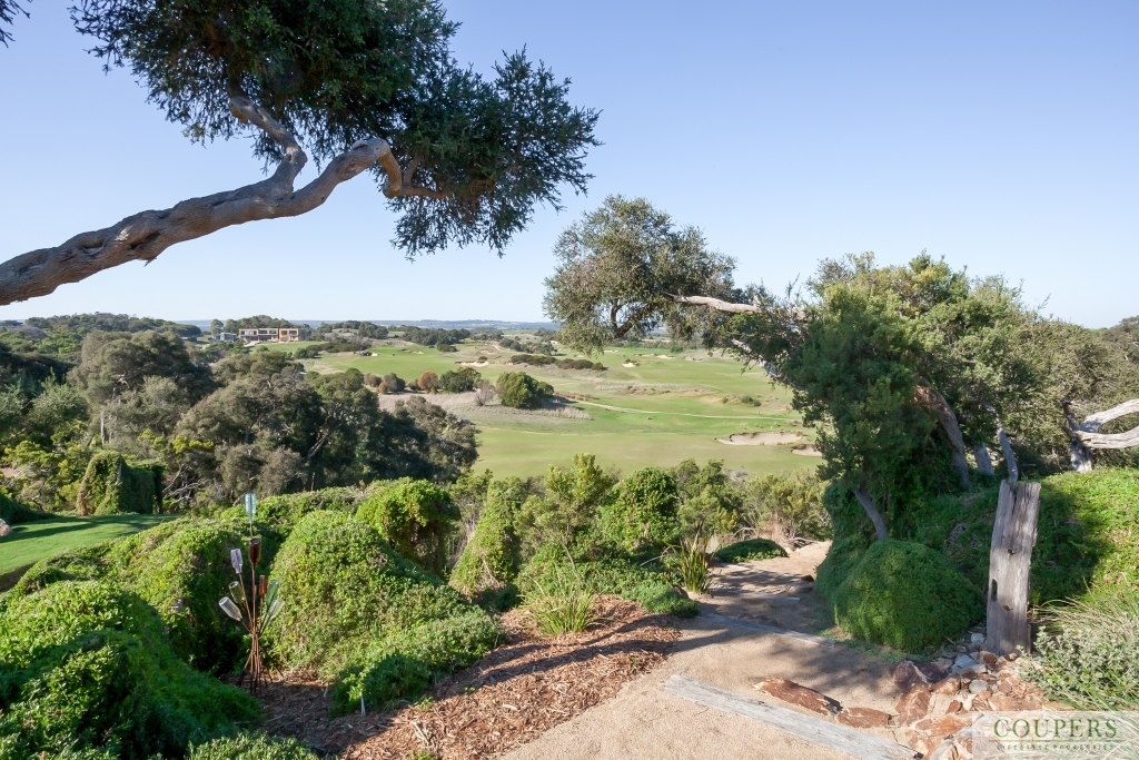 This golf front, one-level, four bedroom home is enviably located on a level block of 652 m2 with some of the best views on Moonah Links. Imagine sitting in the comfort of your home or on the deck enjoying the views from Arthurs Seat to Cape Schanck and watching the action on the golf links.  Fronting the golf course with amazing 180 degree views is: north-facing, light-filled, main living area comprising the open-plan living/dining/kitchen, separate rumpus/media room, covered alfresco, deck and master bedroom - all orientated to take advantage of the spectacular views.  On entering the residence, one is struck by the views beyond.  Close to the entry are: two guest bedrooms, guest bathroom, the large garage with space for golf cart and with internal access, laundry with storage. For a closer look of the beautiful landscape, wander down the manicured path to the fairway of the 6th fairway of the Legends Course.