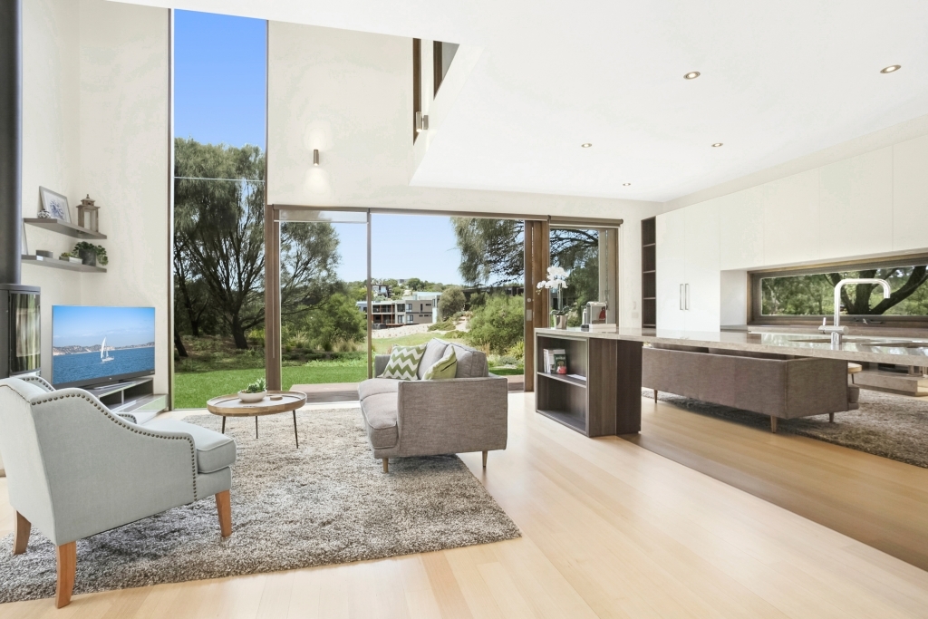 This luxurious house has three large bedrooms including a master with ensuite, two living areas including an expanse of light-filled, ground floor living space opening onto private decks and courtyard, welcoming the landscape into the home.  Designed with plenty of natural, cross ventilation for your comfort. Fireplace and reverse-cycle air-conditioning on lower level.  Stroll to the Clubhouse with restaurant, bar, golf pro shop and day spa. A short drive to wineries, horse-riding, ocean and Bay beaches, The Hot Springs and the cosmopolitan towns of Sorrento and Rye.
